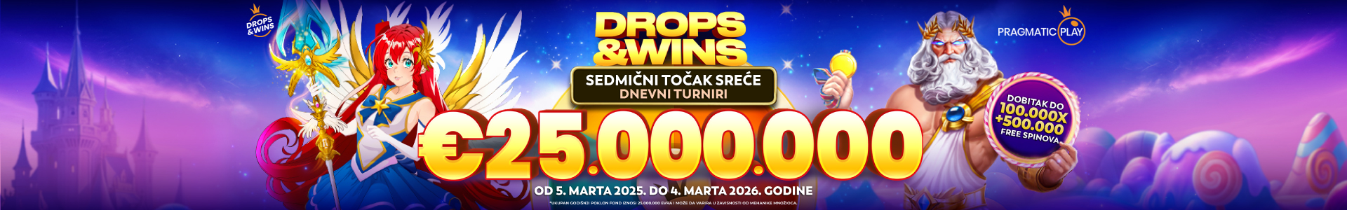 Drops & Wins Weekly Wheel Drops traje od 19. novembra 2025. u 19:01 CET do 4. marta 2026. u 18:59 CET („Promotivni period“).