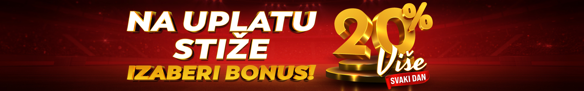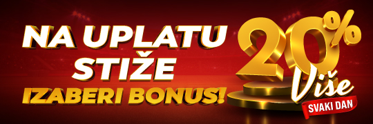 - Za uplate Maestro, Mastercard i Visa karticama igrači ostvaruju pravo na bonus od 20%.